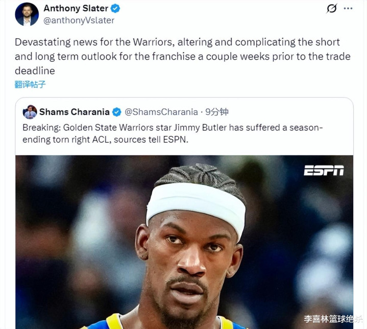 骁雄跟队记者安东尼·斯拉特关于巴特勒赛季报销进行了解读:“这关于骁雄来说是令东说念主心碎的音讯,并在交往截至日之前变嫌况且复杂了骁雄的短期和永远估计。”
