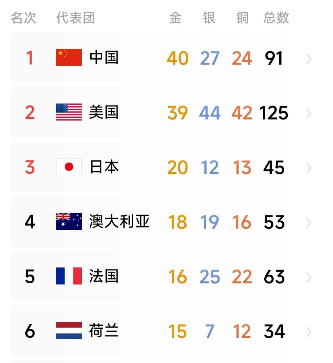 好意思国🇺🇸和中国🇨🇳,本届奥运会就差一枚金牌了,李雯雯刚拿下一成列重金牌,好意思国紧随后来就拿了一枚自行车金牌。39和40,就差一枚,而好意思国女排仍是被意大利女排3-0拿下 这枚金牌好意思国莫得了,是以终末一枚金牌便是要看好意思国女篮了,好意思国女篮实力执意,不外此次敌手是人法国女篮,即使赢了,好意思国和中国金牌亦然打平了,中国也算碎裂了历史,外洋创造了佳绩。不外从合座奖牌榜来看,中国和好意思国差距不小,赓续加油吧,还有三大球差距强大,好意思国女足体育录像/图片,男篮齐是冠军,女排亚军,终末女篮。。