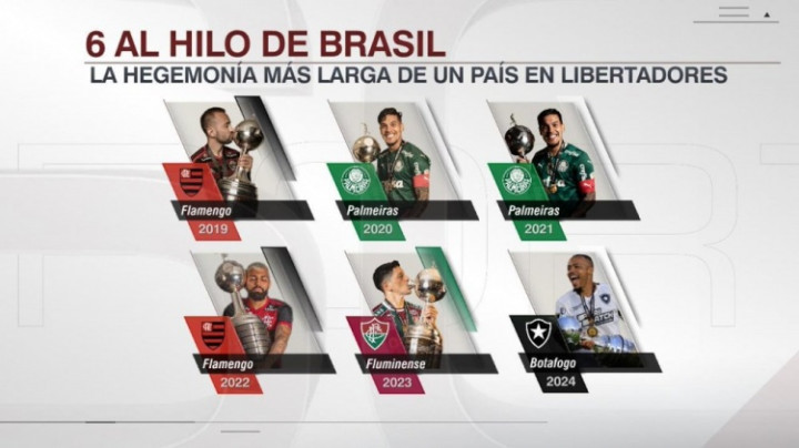 ESPN指出,近6届自如者杯,巴西球队均夺冠,其中4届决赛是巴西球队内战,上一支问鼎自如者杯的非巴西球队是2018年的河床。