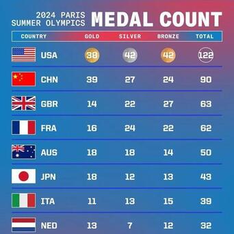 奥运奖牌榜体育最新信息,中好意思主见不相通,究竟是不是应该更垂青金牌数目